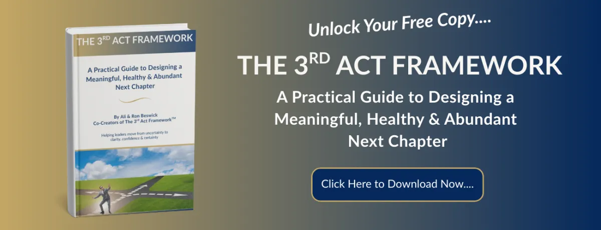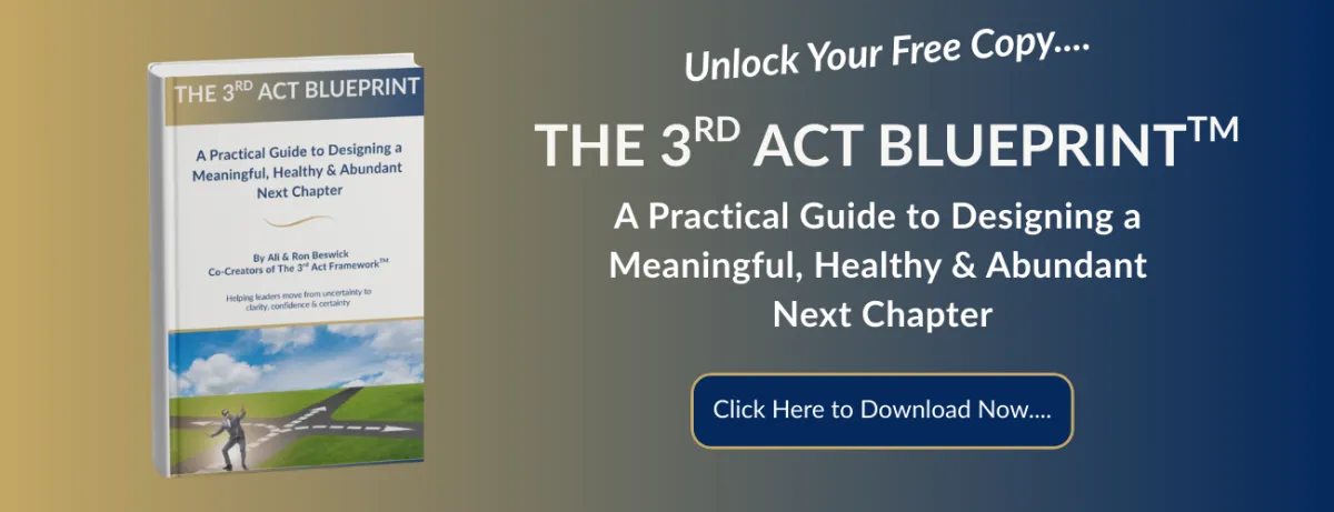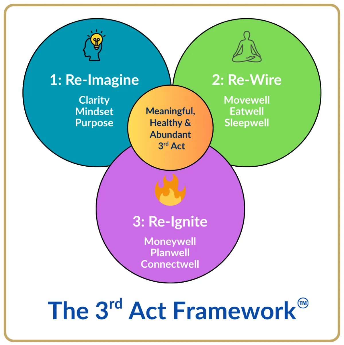Helping midlife leaders design a meaningful, healthy and abundant 3rd Act of life — using the 3rd Act Framework™, to create clarity, confidence and certainty around life, work and wellbeing.